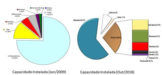 Os resultados dessas ações podem ser verificados através da Figura 3. Constatam-se que as modificações proporcionaram o avanço necessário ao setor e ao Sistema de Inovação. Conforme a figura demonstra, em 2009, a geração de energia eólica chega próximo de 0,35% da capacidade instalada e, em 2018, os resultados apontam para 8,3%, bem próximo dos valores apresentados no Quadro 1 de 8,6%, conforme o Banco de Informações de Geração da ANEEL (2019).