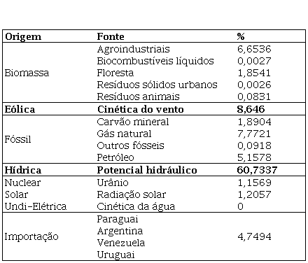 Embasado nos dados pesquisados, no Brasil ainda se configura uma forte dependência secular da matriz hidráulica, conforme exposto no Quadro 2.