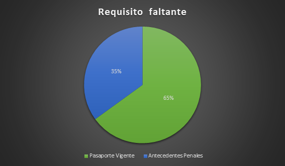Como se muestra en la ilustración que relaciona los dos requisitos más complejos de recabar están; pasaporte vigente y antecedentes penales, siendo el segundo el que crea una mayór dificulatad en un rango de dos tercios evidenciandose que es evidente que este requerimiento es la cima del iceberg que obstaculiza estos trámites vitales para un ser humano en condición de movilidad.