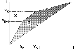 A Figura 1 mostra, no eixo horizontal, a proporção acumulada de X e, no eixo vertical, a proporção acumulada de Y. A diagonal de 45 graus traçada na origem dos eixos chama-se “linha de perfeita igualdade” e pressupõe que as variáveis expostas sobre essa linha possuem o mesmo valor. A curva de localização posicionada acima e à esquerda dessa diagonal, é formada pelos pontos das proporções acumuladas das variáveis X e Y. O distanciamento entra essas curvas indica a magnitude da concentração espacial.