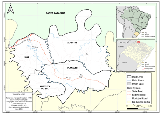 One of these examples is located on the northern border of the state of Rio Grande do Sul, Brazil, in the municipalities of Alpestre (67.74% of the total sample), Ametista do Sul (16.13%), Planalto (12.90%), and Iraí (3.23%) (Figure 1). We chose these municipalities due to the high presence of small-scale farmers, which corroborates that 96.71% of agricultural establishments have less than 50 hectares (BRAZIL, 2017) and employ diversified production systems (TONIN et al., 2018).