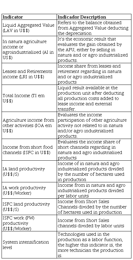When considering the objective of investigating the participation of short commercialization channels in the income generated in different production systems, first, we holistically investigated productions, marketing channels, and consequent income generation for all 31 producers. The following table contains the indicators used in data collection.