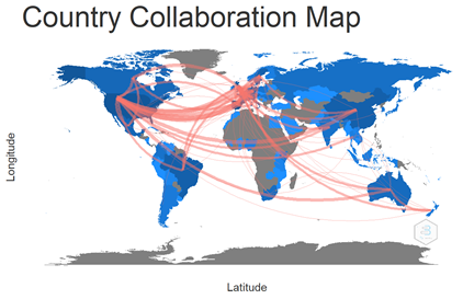 O Brasil tem na sua rede de colaboração, com frequência 1, países como Austrália, Camboja, Chile, China, Colômbia, Equador, índia, Indonésia, Laos, malta, Marrocos, Países Baixos, Nova Zelândia, Polônia, Rússia, Sérvia, Cingapura, África do Sul, Tailândia e Vietnã. Com frequência 2, está Portugal.