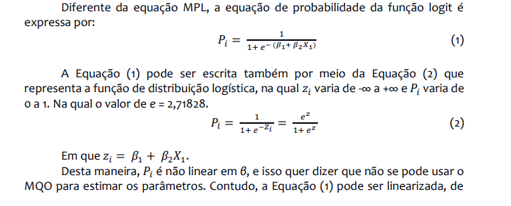A partir disso, a probabilidade de Pi deve respeitar a restrição 0 ≤ E(Yi|Xi) ≤ 1, ou seja, a probabilidade condicional deve estar em 0 e 1.