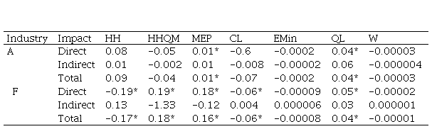 The variable “change in the industry employment in the State (MEP)” sought to identify those sectors that were seen to be sensitive to local changes resulting from the changes in the State industrial demand. In four sectors, this variable was seen to be positive and statistically significant, so that, when the State dynamics was intensified due to exogenous factors, there was a local positive trend. That is, these four sectors were sensitive to external actions, which affected their dynamics directly.