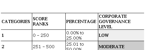 This research instrument, according to Araújo (2010), aims to verify the level of adoption of corporate governance practices, taking into account the weight attributed to each category and the sum of the total points. After that, the data obtained will show the level of governance the organization is at: low, moderate, in consolidation or at an advanced stage.