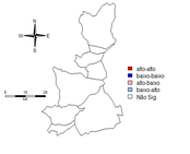 Aplicando o Índice de Moran, não se encontrou correlação espacial, ou seja, não foram identificados clusters.