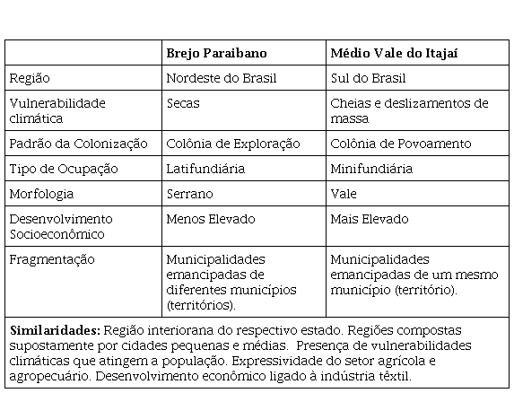 Comparando as duas realidades, a possível explicação para a presença de correlação espacial no MVI e ausência de correlação espacial no Brejo Paraibano pode ser feita a partir da análise histórica da ocupação e fragmentação do território. A primeira diferença vem da divisão territorial, enquanto o MVI foi colonizado por meio de minifúndios, a ocupação latifundiária do Brejo Paraibano dificultou a criação de uma rede urbana. A correlação espacial entre os municípios no entorno de Blumenau ocorre porque a rede urbana já estava consolidada no momento da fragmentação do território em novas municipalidades. Já a significância de Blumenau quanto ao índice de desenvolvimento socioeconômico da região tem explicação pois essa cidade constituiu o primeiro assentamento, e protagonizou a industrialização e as relações comerciais no MVI. Quanto aos critérios relacionados a desigualdade social, a estrutura latifundiária somada a escravidão e controle de uma elite sobre os recursos hídricos são razões históricas para o menor índice de desenvolvimento socioeconômico em relação a região sulista analisada. Também, a economia colonial voltada à exportação (a exemplo da cana-de-açúcar), e a falta de reinvestimento dos lucros gerados em questões sociais e de infraestrutura levaram a uma condição mais adversa quanto a busca pelo DR.