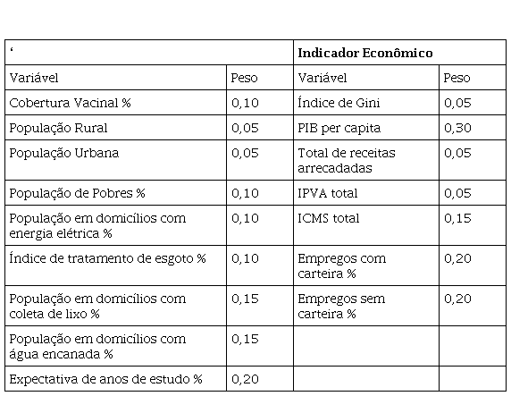 4.Construção dos indicadores sociais e econômicos: Com isso, deve-se atribuir pesos diferentes aos indicadores e a soma dos pesos, em módulo, são iguais a 1;