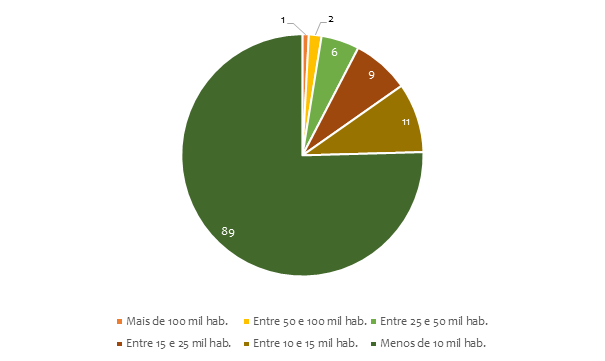 No estado de Santa Catarina, encontramos uma rede urbana marcada pela ausência de cidades com mais de 1 milhão de habitantes, presença marcante de cidades intermediárias, que se configuram como capitais regionais, em todas as regiões, e a predominância da cidade pequena. Assim, o cinema encontrou campo para multiplicar-se ao longo do século XX, mas, ao atravessar este período, não foi capaz de sustentar as demandas de público ou financeiras para o funcionamento dos espaços de exibição de acordo com os novos moldes multiplex (complexos com diversas salas, normalmente em shoppings ou centros comerciais, os quais dão preferência à exibição de blockbusters internacionais). De acordo com o Censo Demográfico de 2010, o Oeste Catarinense contava com apenas uma cidade de mais de 100 mil habitantes em seu território, e somente duas com mais de 50 mil, como pode ser observado no gráfico abaixo (Gráfico 2).