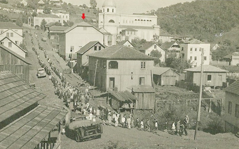 Por fim, ainda em Capinzal, é inaugurado o Cine Farroupilha (Figura 2), em 1929. De propriedade de Leonardo Spadini, a sala contava com 500 lugares (IBGE, 1959A), e tinha como única atividade comercial, a exibição cinematográfica. Relata-se que a Vila não possuía iluminação pública, sendo necessário que os espectadores se dirigissem à sessão das 20h com o uso de lanternas. Spadini e sua família residiam na edificação, toda em madeira de Araucária, de forma que o primeiro andar servia como a residência e a bilheteria, o segundo abrigava a sala de cinema, e o porão foi utilizado inicialmente para moagem de café, e, mais tarde, para a criação de pintinhos (SANTOS, 2010; PELLIZZARO, 2012). No Censo de 1940, Vila Rio Capinzal apresenta uma população de 5.535 habitantes, dos quais apenas 824 foram considerados moradores em situação urbana. A título de comparação, a cidade de Blumenau neste mesmo recenseamento, possuía 25.130 habitantes, enquanto Florianópolis contava com 46.771 (IBGE, 1952)