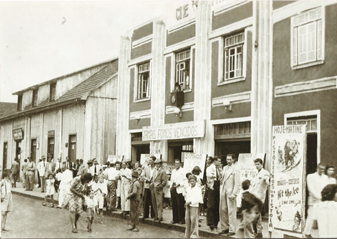 No início da década de 1930, é inaugurado em Joaçaba o Cine Progresso (Figura 3), com características bastante diferenciadas dos cinemas de Capinzal. Em uma época em que a cidade era ainda chamada de Cruzeiro, e o núcleo contava com 1.333 habitantes urbanos, e uma população total de 8.852, de acordo com o Censo Demográfico de 1940 (IBGE, 1952). A sala de alvenaria, construída exclusivamente para abrigar a função, possuía 480 lugares (LUIZ, 2013), e trazia em sua fachada estilemas do Art Déco, linguagem arquitetônica de vanguarda no início do século XX, e frequentemente atrelada às salas de cinema ao redor do globo. Assim, explicitava a moderna experiência cinematográfica em sua totalidade, unindo a tecnologia da imagem em movimento com a ornamentação estilística da edificação, além de comprovar a ânsia deste núcleo em ser visto como urbanizado, ao trazer a palavra Progresso, em seu nome.
