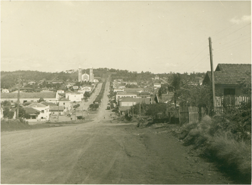 As ações de Achylles em Chapecó revelam o que Nodari (2009) apresenta como um protagonismo dos atores políticos e das elites locais, compostas de descendentes de origem portuguesa, italiana ou alemã. Estas atuavam na organização espacial e social das cidades, criando formas de sociabilidade e alterando, ou estimulando mudanças na morfologia urbana. Durante os anos 1930 e 1940, existiu a preocupação com o embelezamento de Chapecó, seguindo “os mesmos padrões homogeneizantes da civilização ocidental moderna de desconstrução do rural, que era sinônimo de atraso” (NODARI, 2009, p. 75). As elites destes núcleos passam a empreender iniciativas de remodelamento da cidade, em busca de uma civilidade e de modernidade. Para tanto, largas avenidas com canteiros centrais foram concebidas (Figura 5), a energia elétrica foi, após diversos percalços, instalada (NODARI, 2009).