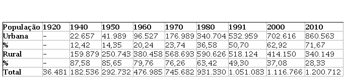 Este processo exerce fundamental influência nas dinâmicas de desenvolvimento da região, refletindo em mudanças importantes também nas cidades e nos movimentos de migração e êxodo urbano e rural4. Ao analisarmos os movimentos populacionais, com base nos censos demográficos do IBGE do século XX, percebemos um Oeste bastante rural, onde a população urbana só vai superar a campesina na década de 1990 (Quadro 1).