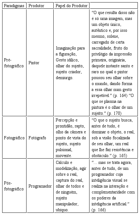 Os autores, ao descreverem as características dos produtores de imagens na perspectiva dos três paradigmas, apontam o que buscam e suas intenções implícitas.
