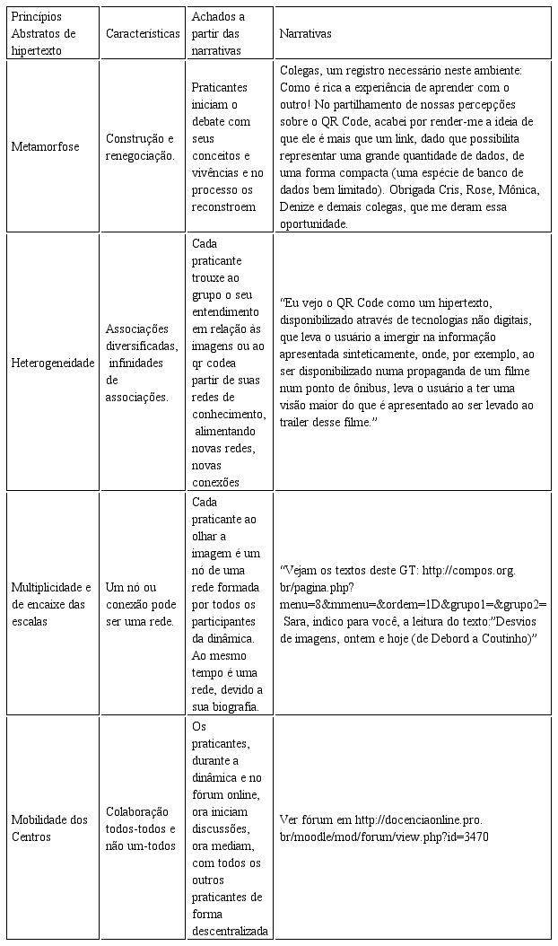 Logo a dinâmica como dispositivo de pesquisa gerou narrativas, exteriorizadas ou não, próximas aos princípios que nos ajudam a conceituar hipertexto.