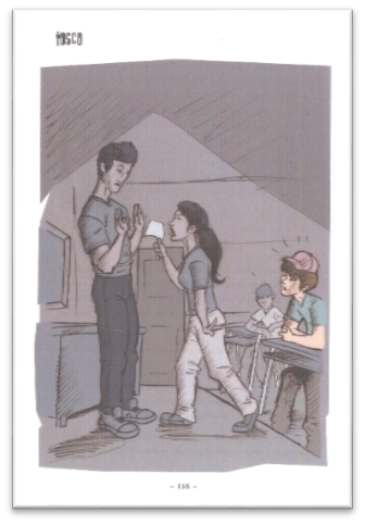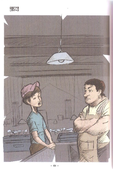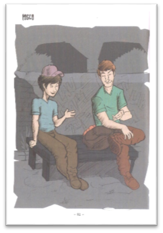São várias as personagens masculinas do livro. O admirado amigo delinquente Pitbull é morto pela polícia, a quem tenta substituir. O invejado amigo Samuel que, mesmo criado pela avó e com pais criminosos, conseguia ser bom amigo, bom aluno, bom namorado, bom neto e bom trabalhador, e acaba sendo inspiração e exemplo para o Tosco. De um modo geral, os personagens masculinos não são afrontados pelo personagem. Mesmo na escola, são as professoras as afrontadas pelo adolescente. Os personagens masculinos, rivalizam, confrontam, mas se impõem ao adolescente (Figura 9).