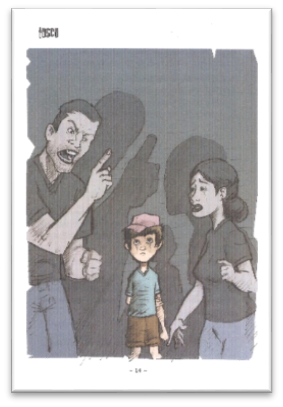 Lá em casa, tudo continuava igual ou pior. Meu pai vivia sumido. E era frequente estar bêbado. Mas acho que era melhor assim, porque quando ele estava em casa, os ânimos sempre se alteravam. A briga começava sem motivo (MATTJE, 2009:10)