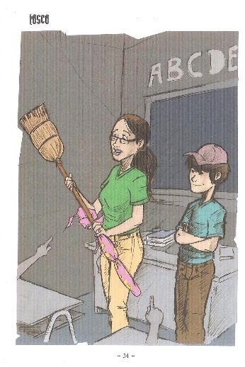 No livro, o autor, a título de criar situações que suscitem debates, forja uma variedade de ocorrências às personagens femininas ao longo da trama. Destinado ao espaço escolar, especialmente aos alunos do 3º e 4º ciclo do ensino fundamental, chama atenção o fato de que todas as professoras tenham sido incapazes de lidar com o protagonista e outros alunos em situações de conflito e agressividade. Suas falas não eram ouvidas pelo protagonista (Figura 5) e brincadeiras abusivas eram recorrentes, como a que os alunos presenteiam a professora com uma vassoura, sendo o Tosco escolhido pela turma para entrega- Importar tabla lo (Figura 6).
