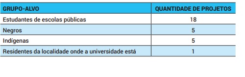 Tabela 2. Quantidade de vezes que as justificativas sobre os grupos-alvos dos projetos foram acionadas (Em absoluto)12