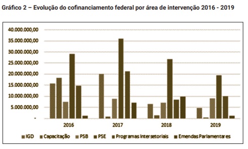 Gráfico 2 – Evolução do cofinanciamento federal por área de intervenção 2016 - 2019