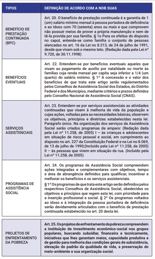 Fonte: Elaboração própria a partir dos artigos da LOAS, 1993 e NOB SUAS (2005)