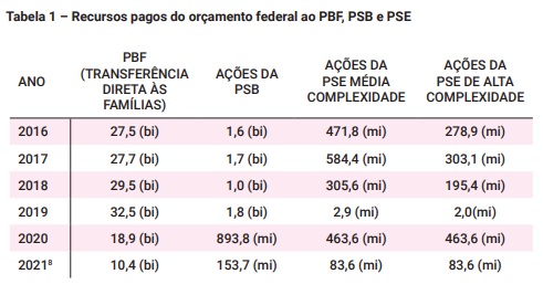 Tabela 1 – Recursos pagos do orçamento federal ao PBF, PSB e PSE