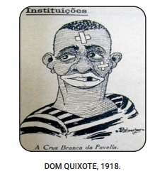 Vale ressalvar que a revista D. Quixote se caracterizava como uma revista ilustrada de humor, porém com veio social. Os grandes jornais da capital associavam diariamente os negros aos casos de desordem no morro da Favela. O que dizer sobre um título de reportagem como: “Amores da Favela – Ciúmes pretos – três navalhadas”? (, 1908). Promotor da violência física, o “mestiço” Estanisláo José de Mattos é retratado como quem se deixa levar pelos impulsos biológicos, irracional como uma personagem de romances naturalistas: