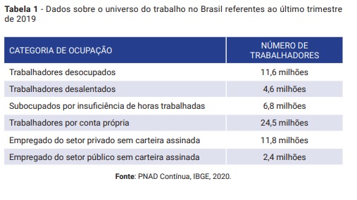 Tabela 1 - Dados sobre o universo do trabalho no Brasil referentes ao último trimestre de 2019