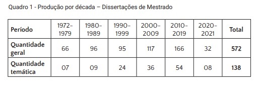 Quadro 1 - Produção por década – Dissertações de Mestrado
