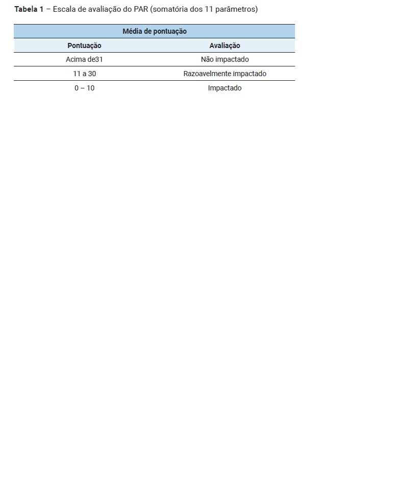 Tabela 1 – Escala de avaliação do PAR (somatória dos 11 parâmetros)