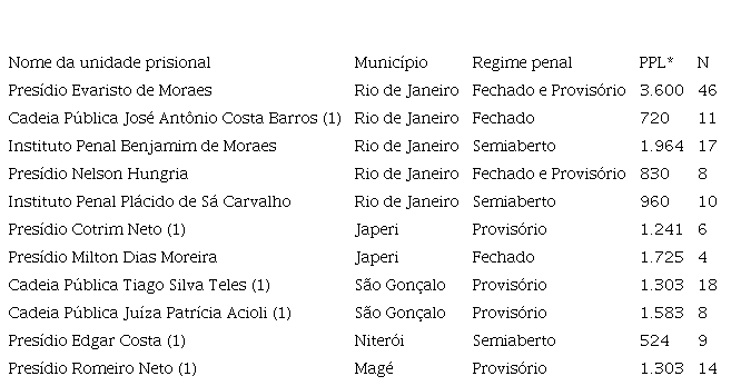 Quadro 1 - Unidades prisionais selecionadas e número de travestis e mulheres transexuais participantes.