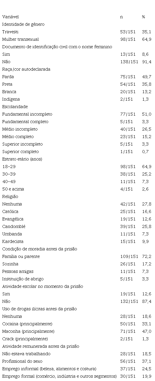 Tabela 1 - Perfil sociodemográfico de travestis e mulheres transexuais em privação de liberdade na região metropolitana do Rio de Janeiro, Brasil, 2021