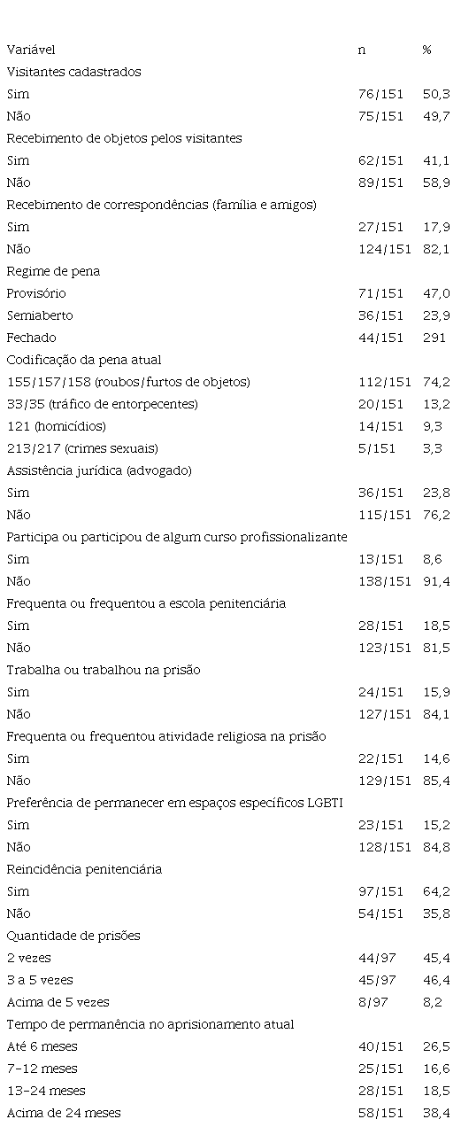 Tabela 2. Perfil prisional entre travestis mulheres transexuais em privação de liberdade na região metropolitana do estado do Rio de Janeiro, Brasil, 2021