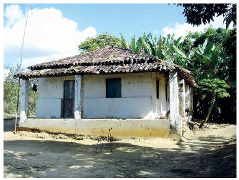 Estas antigas casas de morada dos trabalhadores do engenho foram construídas com um tipo de tijolo manual e maciço que se distingue claramente daqueles usados posteriormente nas construções de alvenaria. Em alguns casos, quando se tratava de casas de moradores com funções prestigiadas no engenho, os edifícios tinham fundações e alpendres de pedra, como no caso ilustrado pela Figura 1, onde se exibe a casa do antigo cabo de Arupema, que permanecia habitada à data do trabalho de campo. Apesar das condições difíceis que ali viviam no momento em que ocorreu o processo de desapropriação, estes moradores são aqueles que permaneceram durante mais tempo em Arupema e habitaram ininterruptamente as respetivas casas até aos dias de hoje. Este aspecto demonstra o forte investimento na casa de morada, assim como na sua preservação.
