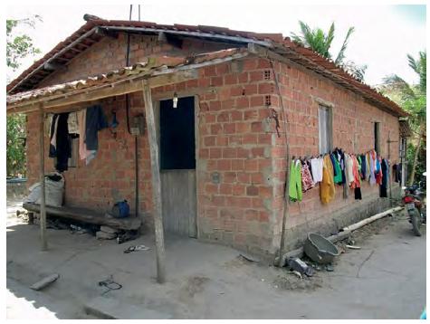 Uma vez que os moradores com sítio preferiram manter as suas antigas casas de morada, a questão colocava-se sobretudo aos moradores de arruado e aos novos ocupantes, os sem-terra. Ainda que as situações de partida que os moradores e os acampados dispunham implicassem necessariamente diferentes soluções, assim aconteceu também entre muitos dos assentados que faziam parte do movimento. Segundo Zé Celestino, que havia acampado com o MST lutando pela terra, construir a casa na parcela tem vantagens: “Lá tem casa, tem onde comer, onde deixar as roupas, tudo perto de onde trabalha”.4 A proximidade com o local de trabalho e o maior controlo sobre o que acontece na sua parcela foram argumentos generalizados a favor da localização da casa na parcela.