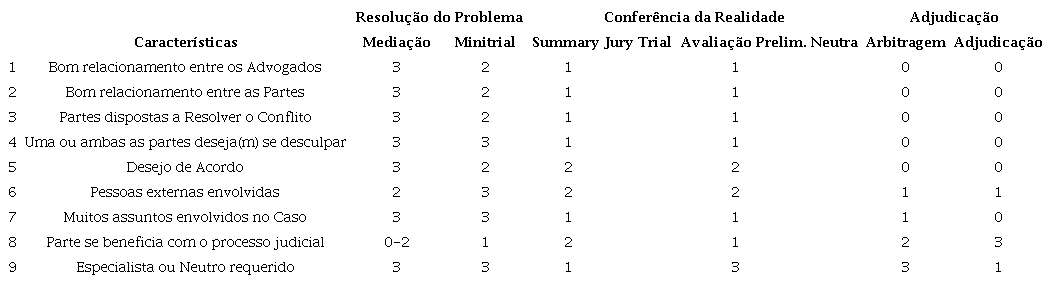 O professor, ao apresentar o Tribunal Múltiplas Portas, questionou “what are the significant characteristics of various alternative dispute resolution mechanims (such as adjudication by courts, arbitration, mediation, negotiation, and various blends of these and other devices)xvii?”, bem como perguntou “how can these characteristics be utilized so that, given the variety of disputes that presently arise, we can begin to develop some rational criteria for allocating various types of disputes to different resolution processes?xviii”. A consequência das respostas às perguntas anteriores é o melhor ajuste no encaminhamento de casos para a adjudicação e casos para os demais métodos complementares de tratamento de conflitos (SANDER, 1979, p. 65-69).