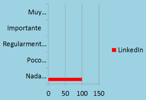 Con respecto a la valoración de las redes sociales, (ver figura 3 y 4) la mejor valorada por las candidaturas fue Facebook, de las 15, 10 coincidieron en reconocer que es muy importante. En cambio la peor valorada fue LinkedIn, ya que de las ocho que la valoraron, todas coincidieron en indicar que fue “nada importante” en la estrategia de su comunicación electoral vía las redes sociales.
