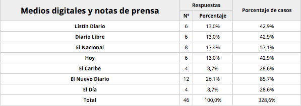 Con relación a los medios de comunicación digitales, a los encuestados se les indicaba que seleccionaran de una lista todos los medios a los que enviaron notas de prensa, por lo que tenían la opción de seleccionar varios a la vez.