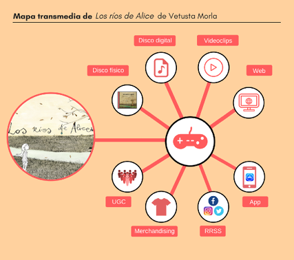 Abstract: Los ríos de Alice is an app-videogame produced by Delirium Studio and Vetusta Morla, a paradigmatic band of self-management and self-publishing in the Spanish music panorama. This application, which is available for different platforms, is the mothership that has given rise, among other contents, to a physical and digital phonogram, several music videos and numerous videos generated by users that are hosted on the internet and that expand the audiovisual narration of the videogame. The aim of this article is to analyze the production and the transmedia expansion of an application that combines music and videogames. In this sense, the specific objectives point to analyzing how this videogame has been produced from a musical base; then, we will observe if the expansion of the story has been developed in the different platforms related to Alice’s story. Finally, we will pay attention to the participation of users in order to analyze what kind of narrative expansion is displayed in the videos.