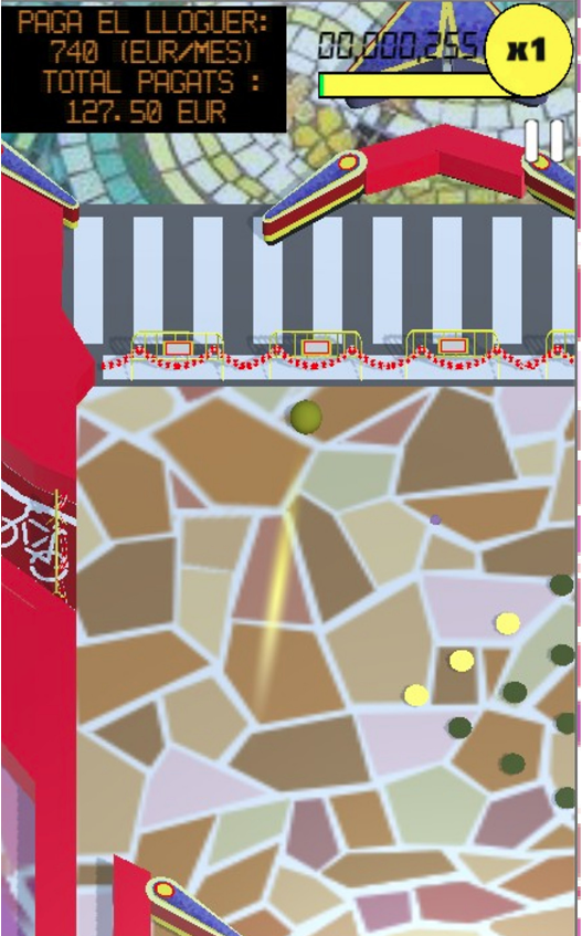 PinPamPoom (Vidal, 2017) es un videojuego para dispositivos móviles (Android e IOS) que emula el juego del pinball en el entorno de la ciudad de Barcelona. PinPamPoom emula una máquina de pinball en un entorno tridimensional, con la peculiaridad de romper con el modelo de tablero estándar —rectangular y único— e incluir diversos elementos del juego más dinámicos, algunos que incluso se desplazan por la pantalla, como jefes finales. La composición del tablero se rige en base a la geolocalización y perfil del usuario, y se construye a partir de consultas al sistema de datos abiertos, así generando de forma dinámica parte del contenido o del comportamiento de los elementos del juego. Durante el desarrollo de la partida, se pone al jugador en el contexto de habitante de la ciudad que se encuentra con problemáticas propias de ésta, del barrio donde vive o del que se encuentra en el momento de la consulta, utilizando los puntos logrados como moneda de cambio para acceder a diversos elementos de juegos asimismo comparándose constantemente con datos como precio medio de alquiler, superficie media de alquiler y número de pisos turísticos.