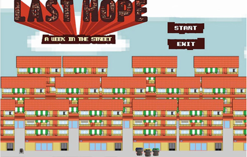 The Last Hope (Morales, Borachénkov, Hernández, Márquez Valero, y Paredes, 2017) es un juego que surge de la colaboración entre el taller de juegos serios de la Facultad de Bellas Artes de la Universidad de Barcelona, coordinado por el Dr. Joan Morales, los estudiantes que participaron en el curso 2017 y la Fundación Arrels. El juego es una simulación del día a día de una persona sin hogar. Su objetivo es, por un lado, invitar al jugador a ponerse en la piel de ese individuo para experimentar en primera persona la problemática de este colectivo y, por otro, conectar esta experiencia con los datos disponibles sobre población sin hogar en la ciudad de Barcelona. En el caso concreto de este juego no ha sido posible utilizar ningún conjunto de datos abiertos del Ayuntamiento ya que en la época de su realización no había todavía datos abiertos sobre el tema. Por ello, los creadores se basaron en el trabajo de recogida de datos de la Fundación Arrels, que opera en Barcelona y resto de Catalunya, prestando asistencia a las personas sin hogar. Los datos recogidos por la fundación, que no se encontraban en un formato abierto y reutilizable, se usaron para generar un nuevo conjunto de datos abiertos añadiéndolo a la API en línea.