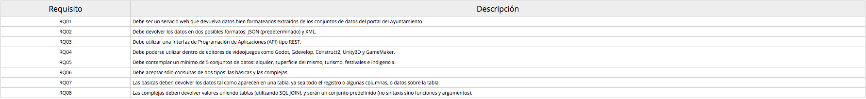Tal como figura en el “Informe de análisis y diseño4, el servicio en línea se ha desarrollado a partir de los requerimientos técnicos descritos en la tabla 2.