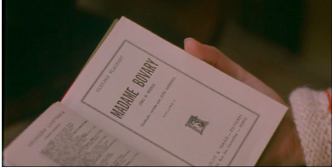 A partir deste momento, é frequente observar-se a inscrição no texto do nome próprio e do cognome como se este fosse um atributo indissociável: «Ema, a Bovarinha» (Bessa-Luís, 1991, p.156). Mais, adiante no romance, Ema Paiva assume o apelido do modelo com orgulho: «Merecia a alcunha de madame Bovary? Pedro Lumiares ficou muito surpreendido quando ela o reivindica como uma espécie de autoelogio. [...] - A Bovary, tu? - disse Pedro Lumiares. [...] Mas uma Bovary, como?» (Bessa-Luís, 1991, p.127-128). No filme, num plano quase no início, Ema ainda adolescente tem nas mãos Madame Bovary numa edição da Lello do princípio do século XX, mas só mais tarde surge, tal como no romance português, uma referência ao texto francês e à sua heroína.