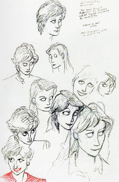 No jornal Le Monde, de 30/01/2009, a desenhadora declara trabalhar como um realizador de cinema que começa por escolher o casting, os locais da ação e faz croquis dos sítios visitados.8 Desenha as personagens, os pormenores como a marca dos carros, o tamanho do calçado ou a cor da escova de dentes.9 Os primeiros desenhos representam uma Gemma Bovery que nem é “muito bela”, segundo as palavras da sua criadora. No início, por se tratar da recriação de um romance do século XIX, Gemma é representada com um olhar lânguido consentâneo com a imagem que a desenhadora tinha da mulher oitocentista. Na conceção da personagem, visível nalgumas edições que reproduzem os desenhos preliminares do «sketchbook», inspira-se em figuras existentes anónimas ou célebres, nomeadamente na princesa Diana que acabara de sofrer o acidente mortal à época dos primeiros episódios. Simmonds explica que se o faz é pela proximidade com a personagem de Flaubert ao sofrer desgostos sentimentais e ao ter um fim trágico. Porém, da princesa de Gales só conservará a forma dos olhos e a inquietude do olhar.