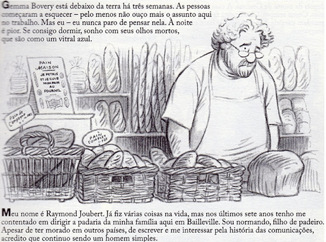 O fabrico do pão tem inclusive uma presença no filme que está ausente da novela gráfica que prefere simplesmente representar a padaria, provavelmente por ser graficamente mais interessante de desenhar. É o que acontece logo no primeiro desenho que representa o padeiro na sua loja rodeado dos diversos pães que comercializa. Imagem que se repete na parte final da novela como para significar a literariedade da BD, o fechamento da narração sobre ela mesma.