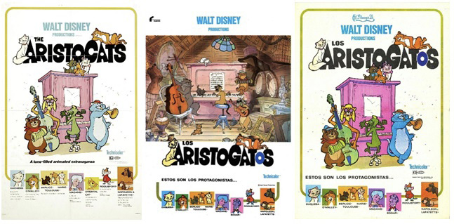 Posters of the film The Aristocats (Hibler & Reitherman, 1970).