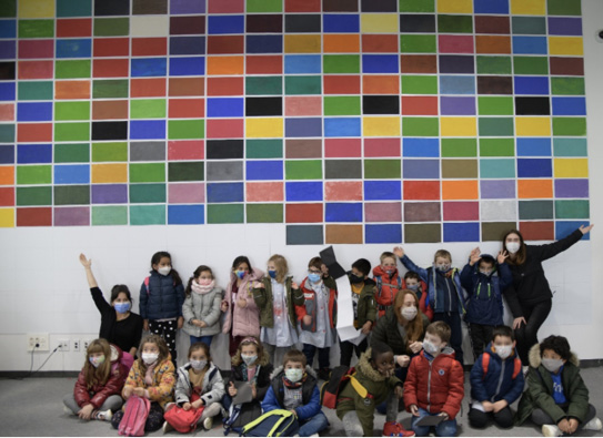 Visual thinking activity with the artwork “256 colors, after Gerhard Richter” in the background