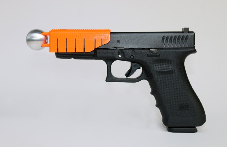 La opción seleccionada The Alternative es un acoplamiento opcional patentado, ligero y asequible que se monta en la parte superior de un arma de fuego convencional (Figura 1). Su uso no requiere reemplazar el arma actual ni aumentar el arsenal para operaciones policiales. Una vez instalado, el arma del oficial se convierte en un dispositivo menos letal. De acuerdo con Alternative Ballistics (2021), es compatible con armas comunes como Glock 17, Glock 19, Smith & Weston M&P, CZ-P10 y Sig-Sauer P-229, y admite municiones de 9 mm y calibres .40 y .45. La unidad The Alternative emplea una aleación patentada que permite que una bala disparada se incruste en el proyectil mientras se dirige al objetivo, de modo que funciona como una especie de bolsa de aire para la bala, y así mantiene su impacto contundente para someter al sospechoso.