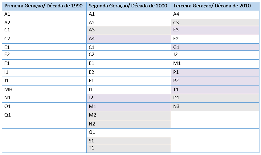 A pesquisa na qual se insere o presente artigo procurou trazer à tona também a história da vida profissional das professoras que pertenceram ou pertencem ao quando de docentes da Unidade de Atendimento a Criança. As docentes foram organizadas em grupos de três gerações correspondentes à década em que chegaram na Unidade. O quadro abaixo detalha a relação quantitativa de docentes em cada período5. As linhas sublinhadas correspondem às professoras novas em cada década.